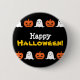 A simple Halloween Button Badge featuring a repeating border of a cute pumpkin and Ghost combo on a black background. Fantastic for children's parties! Customise all the text to make it yours!