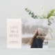 Minimalist design featuring delicate font and one image layout. "love, peace joy" greeting.
