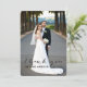 Vertical Style. Simple Handwriting Script Overlay Photo Wedding Thank You Cards. Design by Elke Clarke© for MonogramGallery printed by Zazzle. Send out your wedding thank you message as newly weds to your friends and family using this beautifully, simple thank you card with the words "thank you" written in a black handwriting typography script text overlay. Replace the sample photo with your own. Add your personal thank you message on the back or leave blank and hand write your message in person. Other colours available.