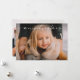 Simple Handwritten Script Photo Christmas Holiday Card features hand-lettered Merry Christmas overlay typography on the front. The back has an additional photo and a heartfelt holiday message from the family. Click the Edit button to customise this design.