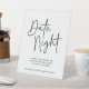 This sign invites guests to share date night inspiration for the happy couple with a black calligraphy script and two lines of custom text.