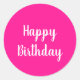 Simple Happy Birthday Hot Pink Classic Round Sticker