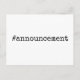 This straightforward design gets right to the point. In a friendly typewriter font, I've placed "#announcement" in the centre of the front. Maybe you'd like a different hashtag. That's an option!On the reverse is a more traditional setup with additional fields for a variety of important details. Change any of these as you see fit. You may also change font and background colours if you wish.