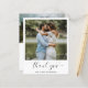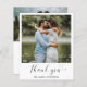 Cute budget wedding thank you card with a simple and minimalist design featuring "thank you" in an elegant script with a heart at the end along with your names under your favourite photo. The back has a second picture and your custom thank you message. A modern black and white design that coordinates with any style of wedding.
