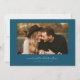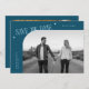 Modern and stylish save the date card featuring a modern typography text that says "save the date." One photo in the font and one on the back. The background is teal.