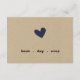 Simple heart details card design on Kraft for rustic wedding - simply change background colour to select heart colour.