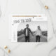 Modern and stylish save the date card featuring a modern typography text that says "save the date." One photo in the font and one on the back. The background is white.