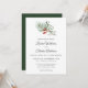 A simple sprig of pine, mistletoe and red berries accents this elegant minimalist wedding invitation perfect for weddings during the Christmas holiday season and winter months. The text pairing combines modern script type face spelling out the bride and groom's names combined with elegant serif type face for the other text. The back of the invitation is a matching forest green. You can edit this colour to any other colour if you desire. Personalise the text with your wedding details.