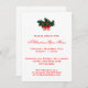 Customised wording. Simple and traditional, yet still festive, this features small, petite, holly berry branches tied with a red bow. The holly sprig is at the top and this is the only design. Your information is below in a red text. Just personalise with your holiday information, and change where needed. The event name can be changed to a Christmas Party. Matching postage in my store's Christmas category.