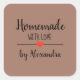 Simple Homemade with love brown script custom Square Sticker