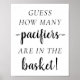 Counting Game Table Signage: Simple "Guess how many" (pacifiers, candies, socks, etc) baby shower or gender reveal party table sign featuring a fun, casual hand-lettered script. The classic design includes a modern handlettered quote typography overlay. For other colors or matching products, please visit the JustFharryn Zazzle store, or contact the designer, c/o Fharryn@yahoo.com All rights reserved. #bohochic #zazzlemade