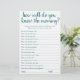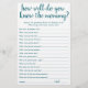 "How Well Do You Know Mummy?" Who best knows the mother-to-be? Simple keepsake baby shower or gender reveal party game featuring a fun, casual hand-lettered script. The classic design includes a modern handlettered quote typography overlay. For other colours or matching products, please visit the JustFharryn Zazzle store, or contact the designer, c/o Fharryn@yahoo.com All rights reserved. #bohochic #zazzlemade"