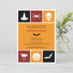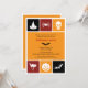 Get out your costumes and send this contemporary invitation to make for a fun Halloween party. This invitation uses the icons of Halloween to convey spooky wishes. The orange, red and black colours surround icons of a witches hat, spider, skull, a bat, among others to frame your customised text. Add any extra text on the reverse. Available in alternate colours with matching products.