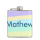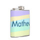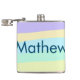 The flask itself is fine. It’s a cheap flask, obviously bought in bulk, however am prepared to overlook that. Given that it is a personalized item, I would have liked to have seen gift boxing instead of the generic packaging. Terrible printing, and/or quality. It’s a cheap, tacky vinyl. It is not cut straight and is also applied in a way that it is overhanging the bottom, causing the glue to catch on items and it will eventually roll and tear, damaging the wrap.