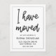 Moving announcement postcard: let your friends and family know about your new address with this simple and fully customisable postcard. Choose your favourite colour for the text and background.