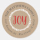 Affordable custom printed round return address stickers personalised with your family name and return address. This rustic modern holiday design features red JOY lettering and branches on a faux kraft paper background. Use the design tools to change the background colour and fonts to further customise your own unique Christmas return address labels.