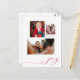 This customisable holiday photo postcard features three photos accented by the word joy in red. The back is setup as a postcard for easy mailing.