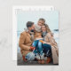 This is a modern and elegant holiday postcard with a minimal and simple photo based design with a beautiful handwritten script of the greeting “Joyful”.