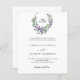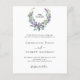 White background. A floral wreath made of lavender flowers and watercolored eucalyptus greenery. Personalise and add your monogram initials, names, and details. Black text.
