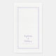 This elegant lavender wedding dinner paper guest towel features a crisp white background framed with a double‑line lavender border. Personalized names and wedding date appear in matching lavender script and serif typography for a coordinated, timeless look. The soft lavender palette makes this towel a natural fit for spring and summer weddings, especially outdoor celebrations, garden receptions, and airy seasonal events. Designed to coordinate with our Lavender Wedding Invitation Suite, it adds a refined, cohesive touch to your reception décor, rehearsal dinner, engagement party, or any celebration that calls for a polished, minimal, modern accent.