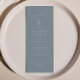 Elegant simple minimal leaf dusty blue 4x9" Wedding Table Menu Cards Flat Dinner Menu in modern script calligraphy. You can find a collection of matching items and size 5x7 on our store VelvetPaperCo.