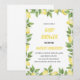 Lemon theme baby shower invitation featuring watercolor illustrations of lemons, lemon blossoms and Mediterranean tile pattern. Personalise by adding names, date, time and other details.