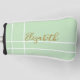This simple light green and white personalized golf putter club head cover has minimalist solid color blocks and a gold editable name for the lady golfer in your life. Give one to your mom, sister, or anyone else who you want to give a little present that relates to their hobby, or get one for yourself. Cute and useful, too!