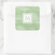 Simple Light Green Subtle Marble Modern Monogram Square Sticker
