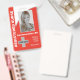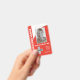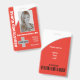 A minimalist and simple design featuring a red and white coloured background, photo, barcode and logo template. Easily customise this badge to your brand. -designed with ❤ by Zaubershirts-