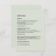 This simple light sage green wedding details enclosure card outlines all the logistics that guests are concerned about: reception, accommodation, and transportation. Simply edit/personalize and make it your own. If you like, this collection also offers a matching two-sided meal choice wedding RSVP card with the option for your guest to RSVP online, using the QR code, email, or text.