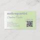 Beautiful elegant minimalist style artistic makeup artist business card. Contemporary light summer lime chartreuse coloured business card with a modern retro and minimalist lavender violet and sophisticated classy white font. Click on 'Personalise' to find the template ready to be customised with your unique business name, profession and contact information, text and QR code of your choice. This particular pretty and unique design was made for those who like sophisticated classic strong designs.