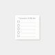 This simple to do list sticky notepad can be personalised with a name for a thoughtful gift. It is a small square 3x3 sticky notepad with grey text on a white background. You can change the text that says "To Do List" to some other type of list if you wish. There are check boxes next to each line that can be ticked as each task is completed.