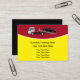 Simple local automotive tow truck service business card template created in bold red and yellow and black with graphic of a flatbed tow truck with a car in tow. Designed for a tow truck driver or towing services.