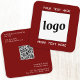 Simple minimalist logo and custom text with QR code for your business. Replace the logo, QR code and text with your own to customise, and change the dark burgundy red background and text colour to match your own branding. For other colour requests, please message me.