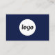 Simple minimalist logo and custom text with QR code on a navy blue background for your business. Replace the logo, QR code and text with your own to customise, and change the background colour to match your own branding.
