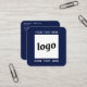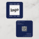Simple Logo and Text QR Code Navy Blue Square Business Card
