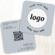 Simple minimalist logo and custom text with QR code for your business. Replace the logo, QR code and text with your own to customise, and change the background and text colour to match your own branding.