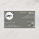 Simple minimalist logo and custom text with QR code on a sage green background for your business. Replace the logo, QR code and text with your own to customise, and change the background colour to match your own branding.