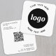 Simple minimalist logo and custom text with QR code for your business. Replace the logo, QR code and text with your own to customize, and change the background and text color to match your own branding.