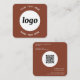 Simple Logo and Text QR Code Terracotta Square Business Card