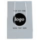 Add your own logo branding and choice of text to this design. Remove the top or lower text if you prefer. Minimalist and professional to promote brand loyalty. Great as a gift bag, product packaging, trade show giveaways, or for your store front customer product purchases.
