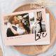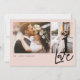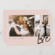 Thank your wedding guests with our modern and minimal two-photo wedding blush pink thank you card. The design features a two-photo layout on the front with "Love" displayed in a modern script. The reverse side features leaves image with red heart in the middle and personalised with your own thank you message.