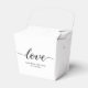 The design features an elegant and modern script font that beautifully showcases the word "Love." The black and white colour scheme adds a touch of sophistication and class to these favour boxes, ensuring they complement any wedding theme.