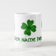 A jumbo mug with 3 pretty shamrocks on it and space for your name. The lettering can also be removed if desired.