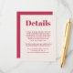 Simple Magenta Modern Minimalist Wedding Details Enclosure Card