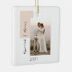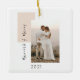 Simple Married and Merry Photo Newlywed Ceramic Ornament