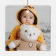 These 2.75" x 2.75" square ceramic ornaments feature a retro bright and colourful greeting, "Merry & Bright," in red, green, blue and gold with placeholders for your family name(s) and year.