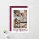 Send your holiday greetings this Winter Holiday season with our minimalist and stylish holiday card, featuring a stunning 4-photo collage on the front and a striking "Merry Christmas" message in modern DEEP WINTER PLUM typography with retro vibes. Personalise the front of the card with your own photos and name for a truly unique touch. The back of the card maintains the same elegant DARK PLUM colour scheme, with space for additional greeting message.