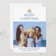 Simple Merry Christmas Modern Photo Beach Holiday Card. Fun modern minimalist design, with an easy cheerful coastal feel, shown in white with storm blue text dark sand coloured starfish, and one photo. Black has been left intentionally blank in solid with so you may add a handwritten note - or add any text and photos you like for printing. We invite you to visit our Zazzle store, Beachy Design Co. to view the Christmas collection, matching products and more.