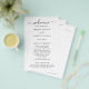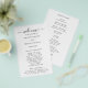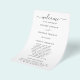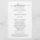 Simple budget wedding program flyer with a clean and minimalist design featuring an elegant touch with the word "welcome" in script with swashes. A modern black and white design that coordinates beautifully with any style of wedding. These cheap wedding programs are printed on sheets of paper for a budget friendly option.